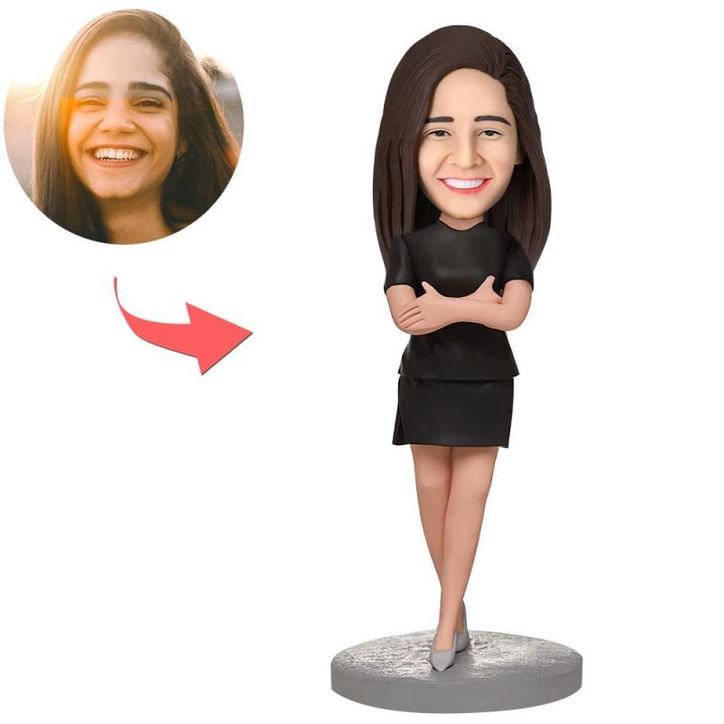 Geschäftsfrau mit verschränkten Armen Wackelkopf Figuren Mit Graviertem Text