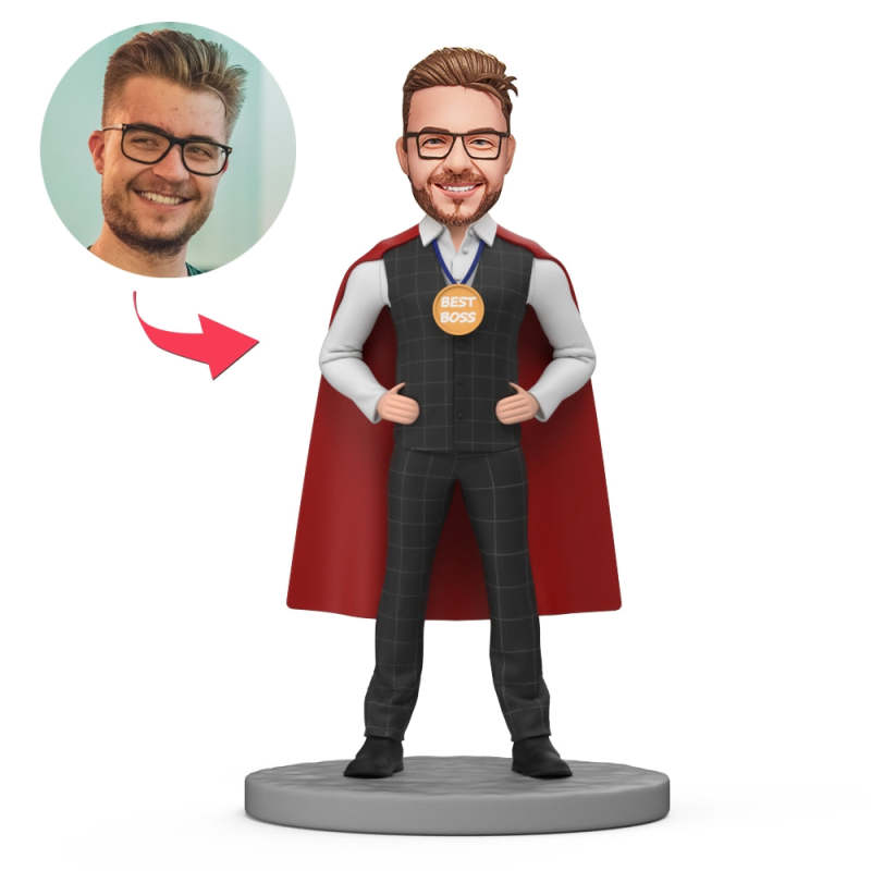 Bester Chef Trägt Einen Individuellen Wackelkopf Mit Rotem Umhang Und Eingraviertem Text