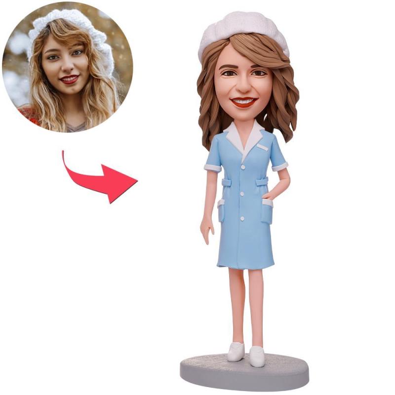 Blauer Anzug Krankenschwester Wackelkopf Figuren Mit Graviertem Text