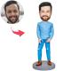 Blauer Anzug Modern Casual Mann Wackelkopf Figuren Mit Graviertem Text