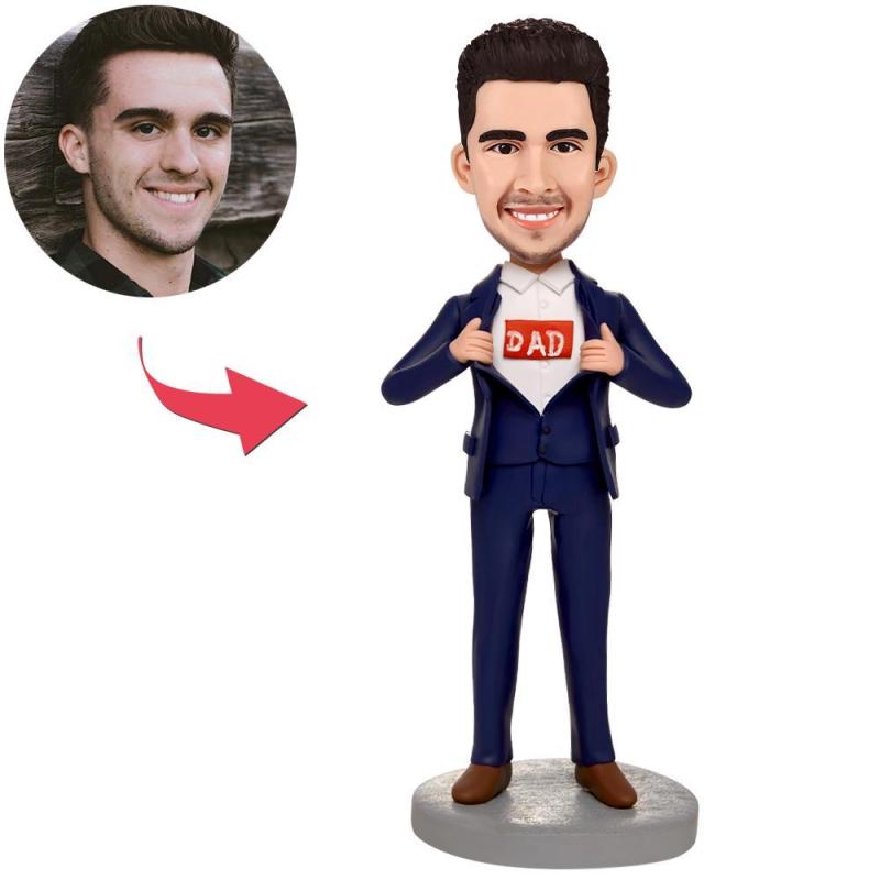 Blauer Business-Anzug Super Dad Superheld Wackelkopf Figuren Mit Graviertem Text