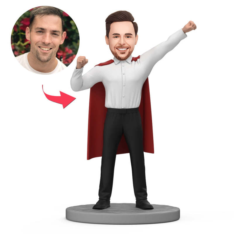 Businessmännlicher Superman Mit Rotem Umhang, Individueller Wackelkopf Mit Eingraviertem Text