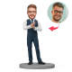 Geschäftsmann Trägt Eine Blaue Weste Mit Individuellem Wackelkopf Und Eingraviertem Text