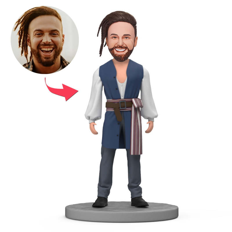Karibische Piraten Tragen Blaue Kleidung. Personalisierter Wackelkopf Mit Eingraviertem Text