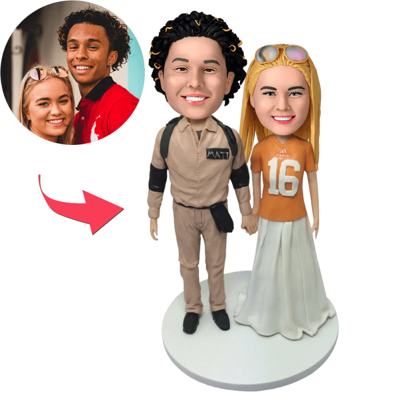 Lässiges Paar Custom Bobblehead mit eingraviertem Text