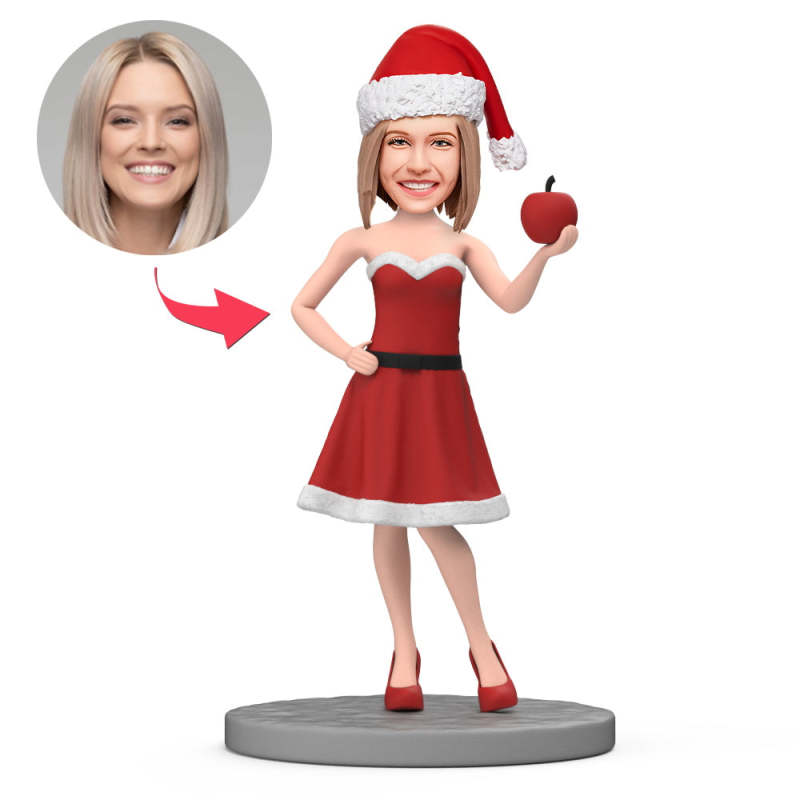 Weihnachtsgeschenk Frau Mit Apfel, Individueller Wackelkopf Mit Eingraviertem Text