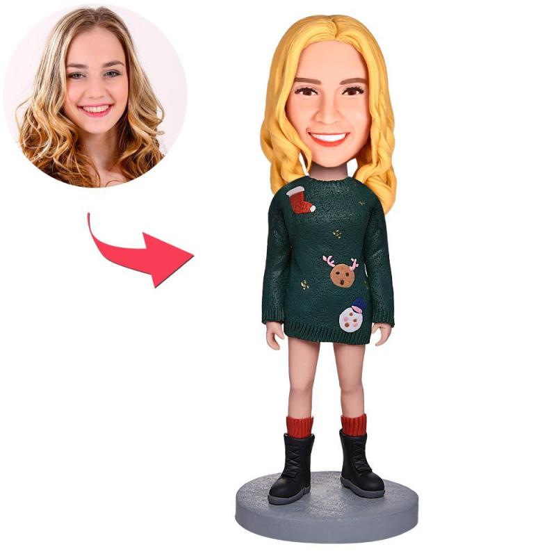 Weihnachtsmädchen Im Grünen Kleid Kundenspezifische Bobbleheads Mit Graviertem Text