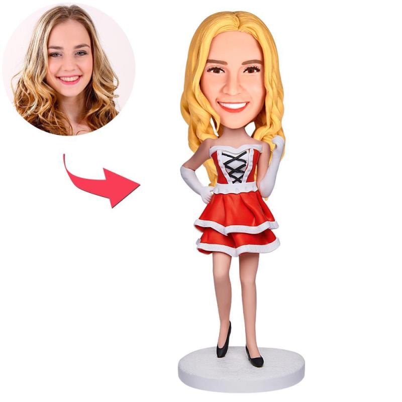 Weihnachtsmädchen In Den Weißen Handschuhen Kundenspezifische Bobbleheads Mit Graviertem Text