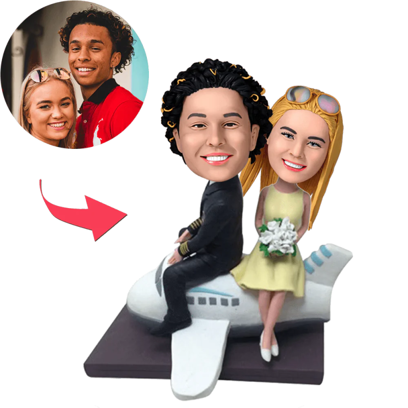 Paar auf einem Flugzeug Custom Bobblehead mit graviertem Text