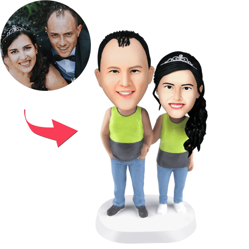 Paar tragen Tanktops Custom Bobblehead mit eingraviertem Text