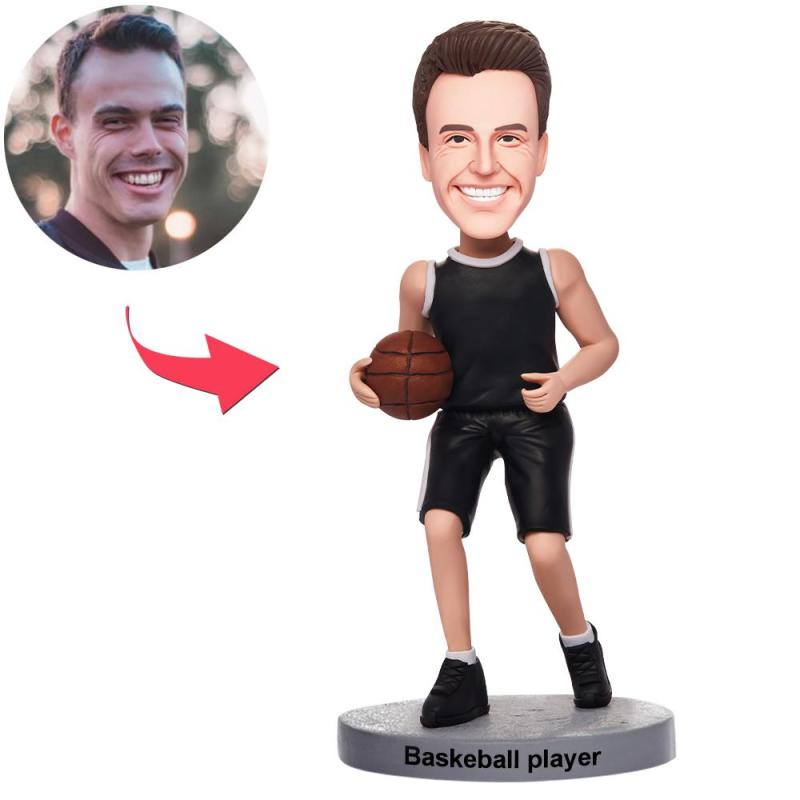 Basketballspieler, der in der schwarzen Uniform dribbelt Wackelkopf Figuren Mit Graviertem Text