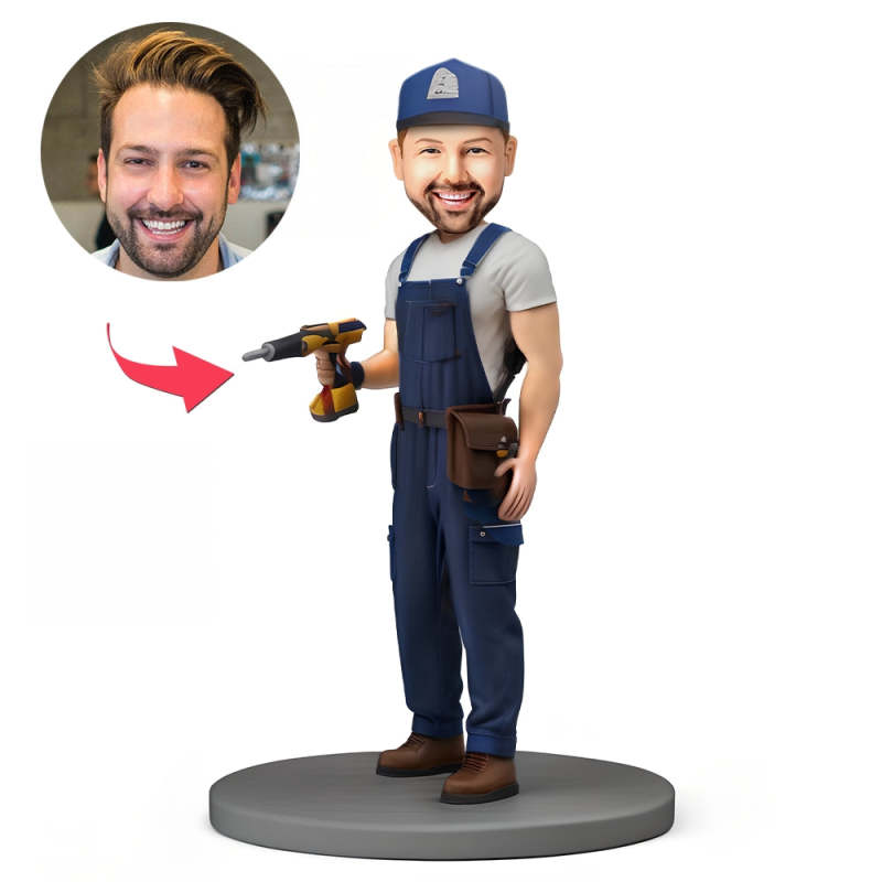 Benutzerdefinierter Wackelkopf-zimmermann Mit Bohrer Und Text