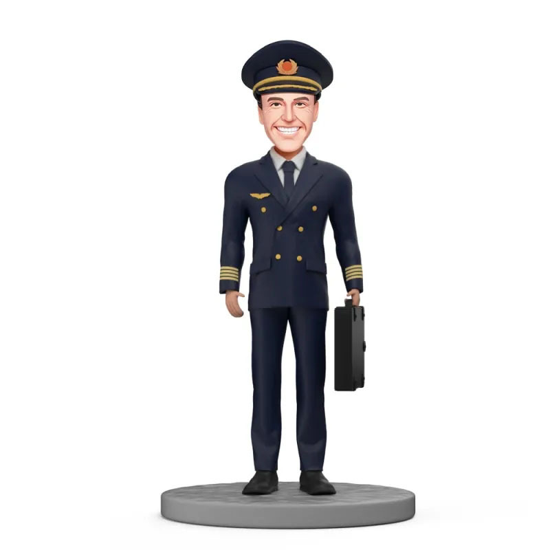 Custom Bobblehead Aircraft Pilot/captain In Uniform