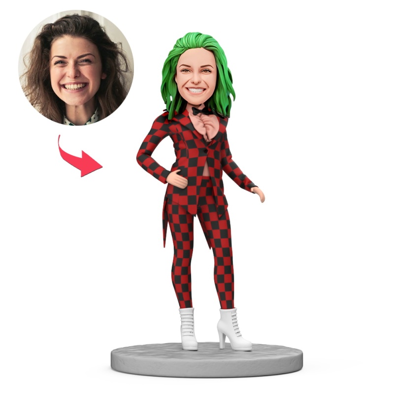 Personalisierte Wackelköpfe Mit Gravur – Geschenkidee Für Frauen Im Rot-schwarzen Karoanzug