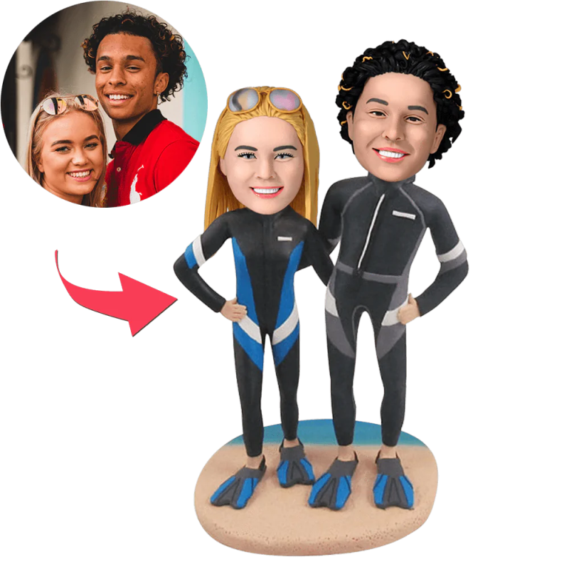 Tauchpaare am Strand Kundenspezifische Bobbleheads mit graviertem Text