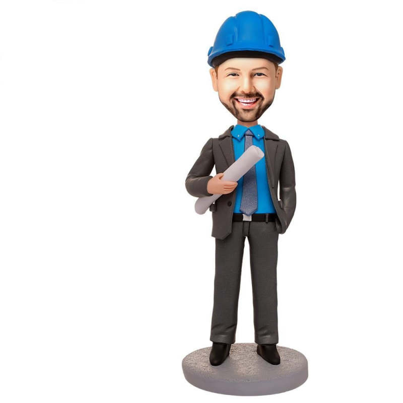 Ingenieur mit Blaupausen Wackelkopf Figuren Mit Graviertem Text