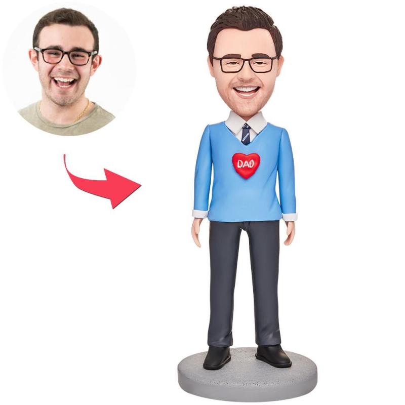 Papa In Blau Custom Bobblehead Mit Eingraviertem Text