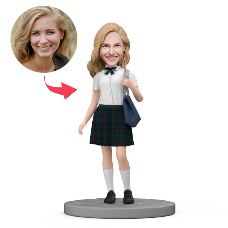 Weibliches Jk Wear Weißes Hemd Und Karierter Rock, Individueller Wackelkopf Mit Eingraviertem Text