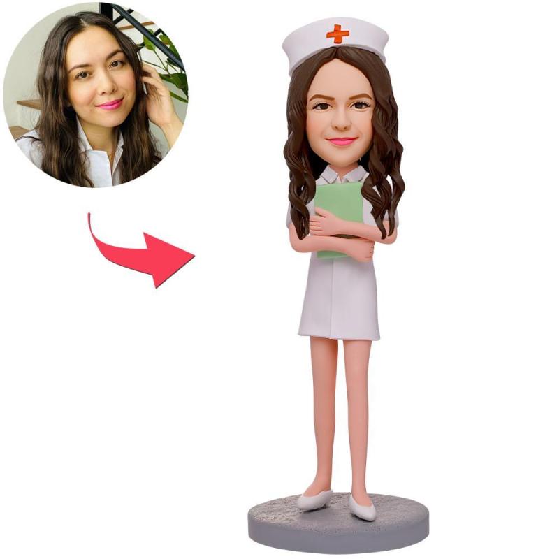 Krankenschwester und Notizbuch Wackelkopf Figuren Mit Graviertem Text