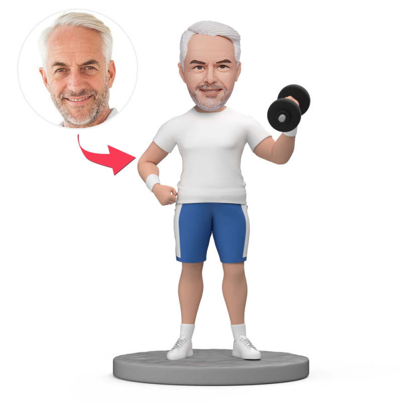 Großvater Hebt Hanteln, Individuell Gestalteter Wackelkopf Mit Eingraviertem Text