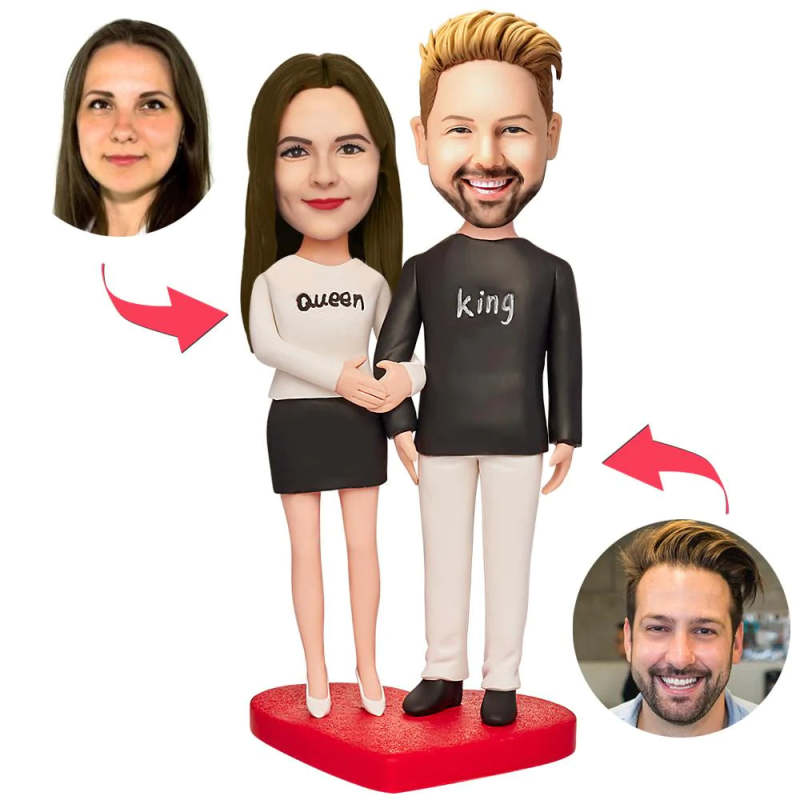 Liebes-Herz-Paar-kundenspezifische Bobbleheads mit graviertem Text