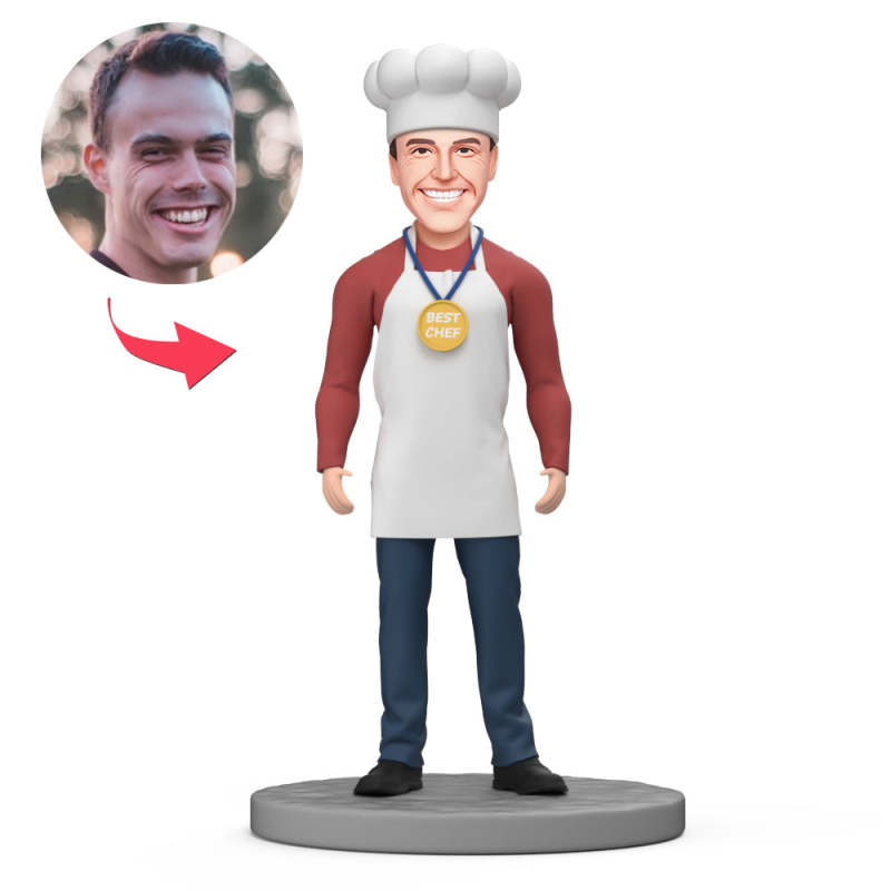 Männliche Best Chef Wear Weiße Schürze Und Kochmütze, Individuelle Wackelkopffigur Mit Eingraviertem Text