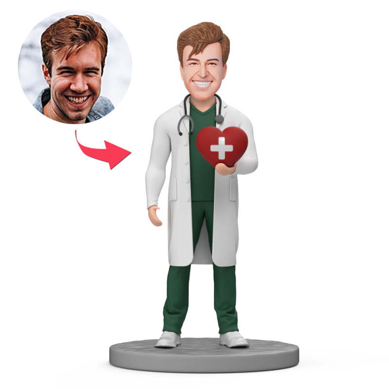 Individuelle Wackelkopffigur „arzt Halten Herz“ Mit Eingraviertem Text