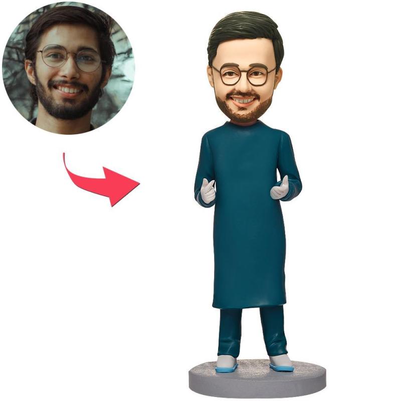 Männlicher Arzt im Operationssaal Wackelkopf Figuren Mit Graviertem Text