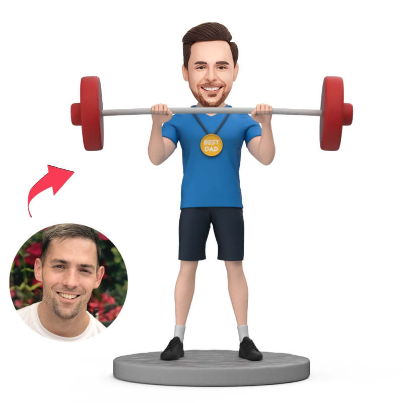 Männliche Gewichtheber-medaille „bester Vater“ Auf Der Brust, Individuell Gestalteter Wackelkopf Mit Eingraviertem Text