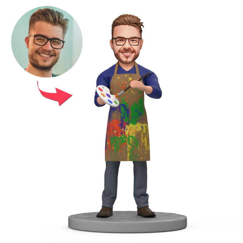 Malerschürze Mit Ölfarbe, Individuelle Wackelkopf-schürze Mit Eingraviertem Text