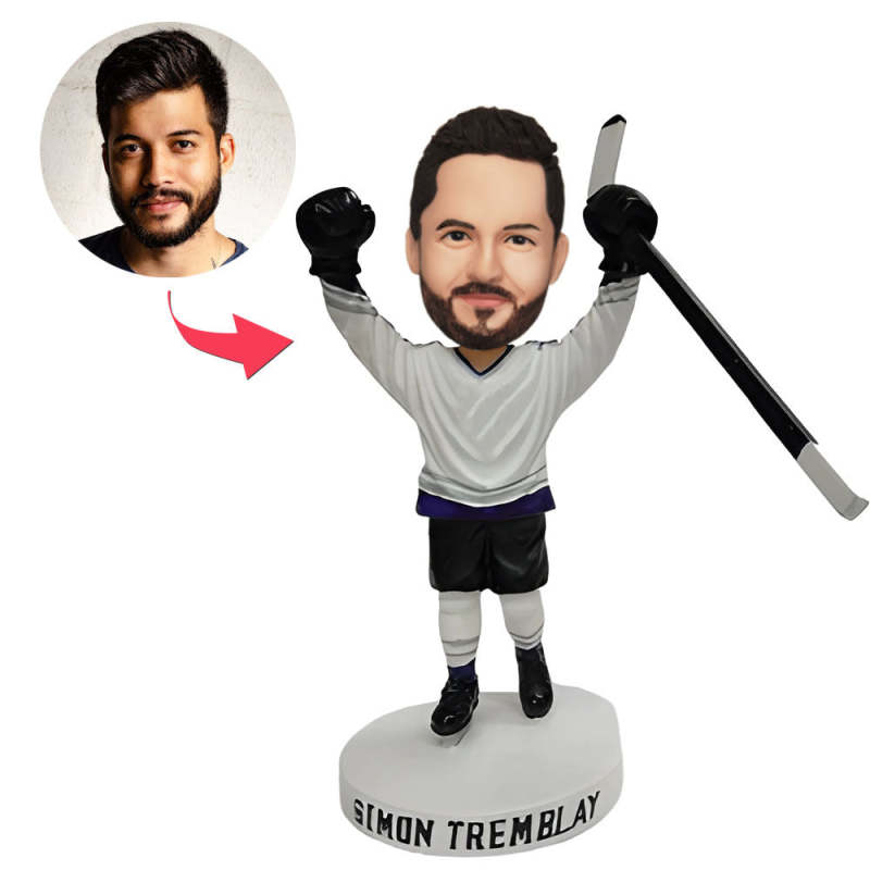 Benutzerdefinierte Hockey-wackelkopfspieler Des Schneeballturniers Heben Feierlich Die Hände