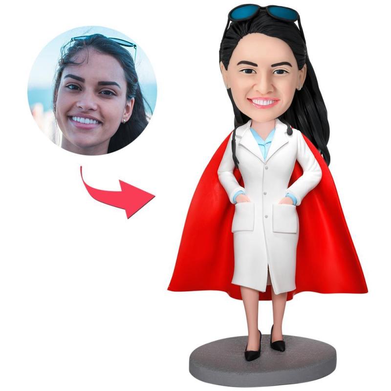 Super Ärztin mit weißem Mantel Wackelkopf Figuren Mit Graviertem Text