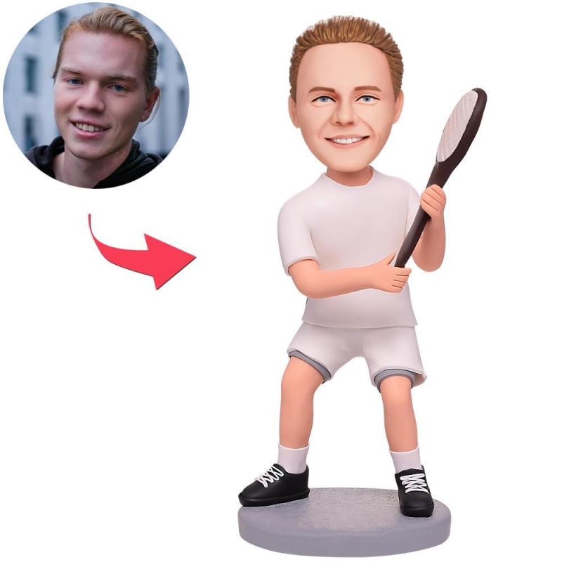 Tennisspieler und Schläger Wackelkopf Figuren Mit Graviertem Text