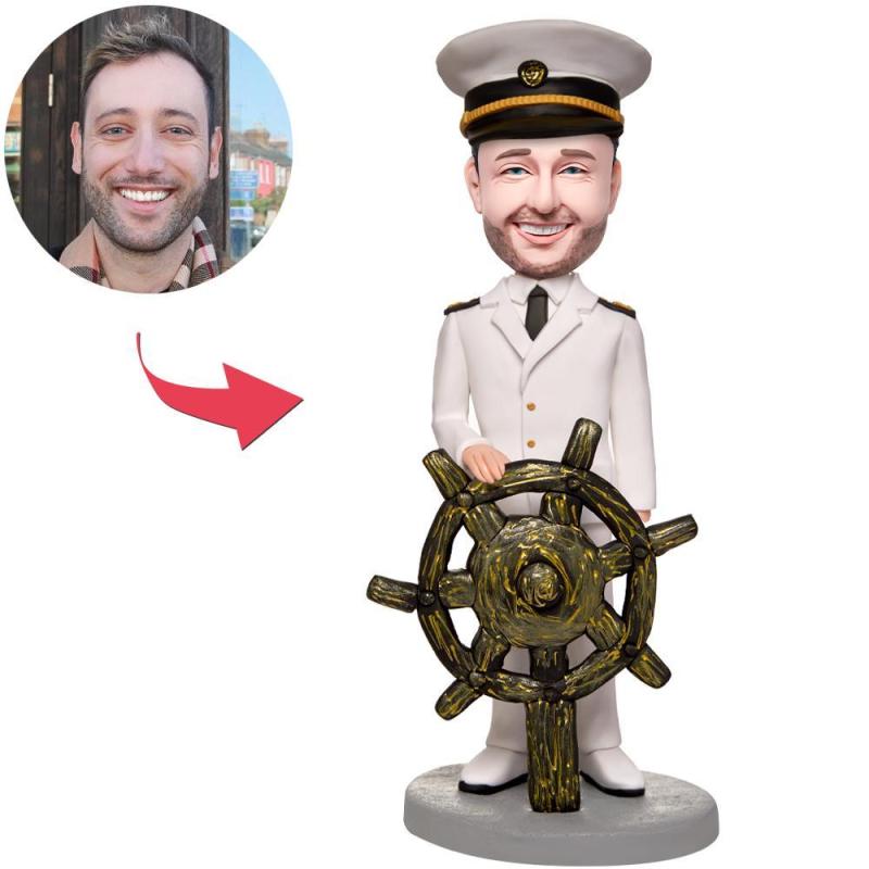 Der Kapitän und sein Ruder Wackelkopf Figuren Mit Graviertem Text