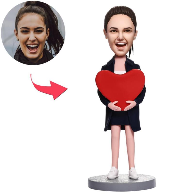 Frau mit Herz Wackelkopf Figuren Mit Graviertem Text