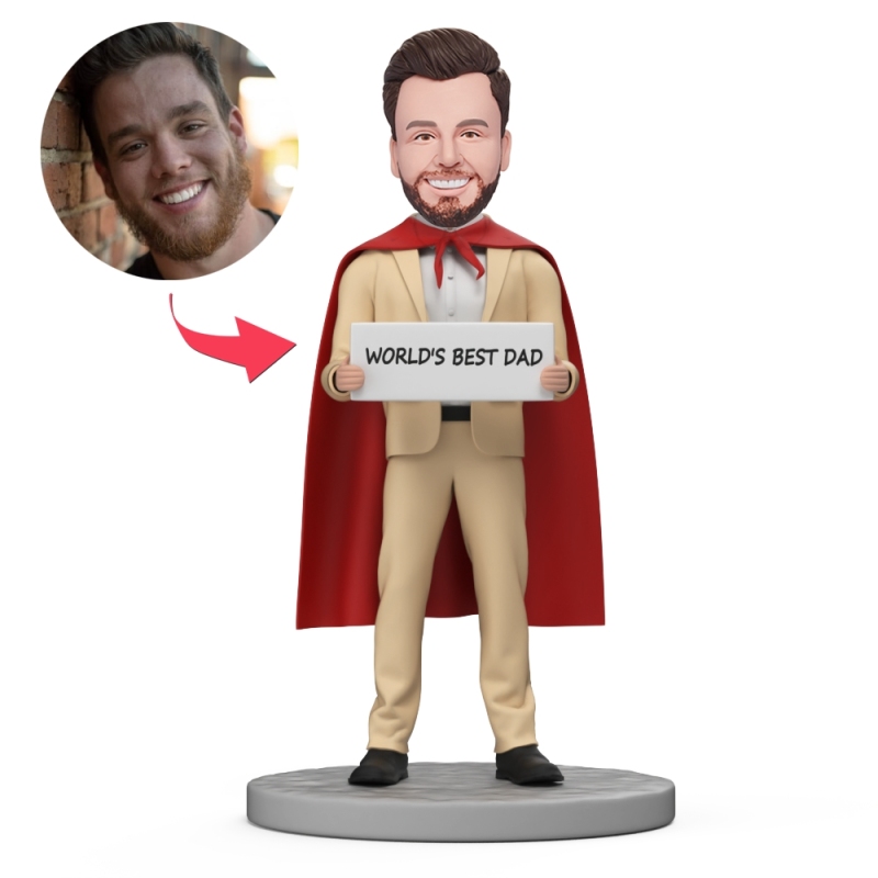 Weltbester Vater Anzug Roter Umhang Individuelle Wackelkopffigur Mit Eingraviertem Text